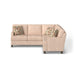 Spirit Meets Style Cozy up with the family or claim it all for yourself with the Moxy sectional that lets you personalize details for the perfect look and feel. Sleek track arms and a square tapered leg provide a contemporary vibe. This sectional is built with superior frame construction and our patented Blue Steel Spring, ensuring your Moxy can be enjoyed for years to come. Create a custom configuration just for your home with five components to choose from. Then, complete the look and showcase your lifestyle with hundreds of different fabric choices, including high-performance and sustainable textiles. Choose from five sectional components to build a custom configuration Straight track arms and square tapered legs provide a contemporary look Semi-attached back cushions remain fixed in place, ensuring a clean look and comfortable feel Removable seat cushions in a distinctive T-shaped style Built to last with the Flexsteel patented C-Flex Blue Steel Spring that provides an elevated level of support Available in hundreds of fabric choices, including those with robust performance and sustainability characteristics Comes with accent pillows to enhance comfort and style Model Number: 5015-SECT Dimensions