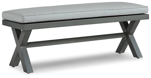 Signature Design by Ashley®Add a distinguished touch of gray to your outdoor living space with this bench. It's made with an aluminum frame with a wood-look finish for a rela...