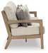 This sofa is a beautiful addition to any outdoor living space. Effortless in its simplicity, this piece echoes your easygoing sensibilities. Combining durable, cutting-edge engineered materials, its Weatherwood construction enhances the contemporary design. Rest assured, the thick cushions and accent pillows are wrapped in high-performance fabric that’s fade-resistant, stain-resistant and a breeze to clean. Pair with the matching loveseat and swivel lounge chair for a spectacular seating arrangement.
