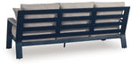 Easy-breezy beauty, made to withstand the elements. This outdoor sofa makes a serene statement with its soothing shade of blue and contrasting wood-look arms. A cushioned seat and back keep you comfy as you lounge. Crafted with durable materials for added longevity, it's a smartly stylish addition to your outdoor oasis.