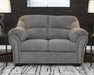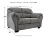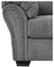 Why sacrifice comfort for style (or style for comfort) when you can have the best of both in this loveseat in pewter gray. Elements include a chic divided-back design and pillow top wrapped armrests that make nodding off all too easy. Calling attention to the elegantly flared armrests—black nickel-tone nailhead trim for a punch of cool character.