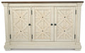 Need a stylish space to store dinnerware and all your dining room essentials? This server is a dream come true, with four adjustable shelves that offer large capacity and a spacious top that's perfect for setting a buffet. Embellished with the casual appeal of three latticed doors, an attractive planked top with a weathered oak finish and a lightly distressed white finish throughout, this vintage look will serve up elegance for years to come.