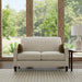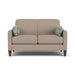 Structured Style Add a touch of cosmopolitan allure to your living space with the Bond loveseat. Its sophisticated mid-century style delivers clean lines with a structured tight-back design and refined welt trim. Mailbox-style arms soften the silhouette, while lumbar accent pillows add style. Square tapered legs, available in three finishes, and the ability to upholster in your choice of fabrics ensures the perfect look. Mailbox curved arms for a soft aesthetic Square tapered legs in your choice of three finishes Includes two lumbar accent pillows in your choice of fabric to match your personal style The patented Blue Steel Spring in the seat provides unmatched support and lasting comfort Sustainably sourced wood frame delivers exceptional durability Tight back design with welt trim for a sleek profile The removable and reversible seat cushions allow you to flip and rotate them for even wear The seat cushions have a high-resiliency foam core that is engineered to maintain its shape over time and contain a layer of recovery foam and a soft fiber top for luxurious comfort Upholstered in your choice of fabric, including those with performance and sustainability characteristics Handcrafted in North America Model Number: 5850-20 Dimensions 36H x 57W x 36L