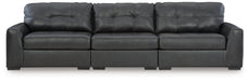 Details Includes 3 modular pieces: left-arm facing corner chair, armless chair and right-arm facing corner chair, "Left-arm" and "right-arm" describe the position of the arm when you face the piece, Modular pieces can float anywhere; sides are finished (with no connectors), Corner-blocked frame, Attached back and loose seat cushions, High-resiliency foam cushions wrapped in poly fiber, 100% top grain leather covers inside areas such as the back, seat and arm cushions; skillfully matched faux leather covers the remaining areas , Due to its natural origin, real leather can show individual characteristics such as healed scars, growth marks, grain variation and shade variation, Natural variations make each hide unique and do not detract from the wearing qualities of leather, Low-profile accent legs with faux wood finish, Platform foundation system resists sagging 3x better than spring system after 20,000 testing cycles by providing more even support, Smooth platform foundation maintains tight, wrinkle-free look without dips or sags that can occur over time with sinuous spring foundations