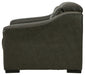 For those seeking to curate a living room retreat with superior comfort and a contemporary aesthetic, this sleekly designed power recliner will become your favorite source of at-home serenity. Rest on expertly matched leather and faux leather upholstery, and use the one-touch power control to recline and adjust the headrest with ease. As you recharge after a long day, your devices can too with USB charging. This recliner is visually enticing in a luxe dark gray, with slope track arms and stitched detailing on the back to enhance its modern appeal.
