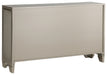 | Details | Made with engineered wood and textured laminate, Silvertone metallic finish, Mirrored top, Faux crystal and chrome-tone finished door pulls, Beveled mirror accents, Bead framed doors, 2 adjustable shelves, Assembly required | |
