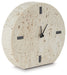 Take note of the time in contemporary style. Crafted from beige travertine, this clock is sure to lend minimalist flair to shelves and tabletops. Black accents provide a dramatic contrast to the earthy sensibility of the simple-yet-sophisticated timepiece.