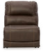 | Details | Includes left-arm facing power recliner, 4 power armless recliners, 2 consoles with storage, wedge and right-arm facing power recliner, "Left-arm" and "right-arm" describe the position of the arm when you face the piece, One-touch power control with adjustable positions, Easy View™ adjustable headrest and zero-draw USB plug-in, Zero-draw technology only consumes power when the USB receptacle is in use, Zero-gravity mechanism allows optimum reclining comfort with infinite reclining positions at the touch of a button, Corner-blocked frame with metal reinforced seat; attached cushions; high-quality foam cushions wrapped in poly fiber, 100% top grain leather covers inside areas such as the back, seat and arm cushions; skillfully matched faux leather covers the remaining areas, Due to its natural origin, real leather can show individual characteristics such as healed scars, growth marks, grain variation and shade variation, Natural variations make each hide unique and do not detract from the wearing qualities of leather, Console with 2 cup holders and hidden storage, Extended ottoman for enhanced comfort, Zero wall design requires minimal space between wall and chair back, Power cord included; UL Listed | |