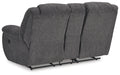 Sometimes seeing is believing. And you can rest assured that this reclining loveseat with console is every bit as indulgent as it looks. Designed to put you in the lap of luxury, the generously scaled seating—wrapped in a wonderfully plush and practical charcoal gray Next-Gen Nuvella™ upholstery—sports pillow-wrapped armrests and curvaceously cushioned head-neck support for feel-good flair.