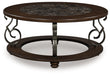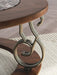 Details Made with birch veneer, decorative laminate and MDF substrate, Top with faux marble laminate and durable polyurethane topcoat, Warm brown finish, Metal legs with durable dark pewter-tone powder coat finish, Assembly required