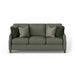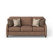Vintage-Inspired Elegance A true heirloom sofa, Gianna is vintage-inspired elegance to last a lifetime. This bench sofa sports luxurious English arms with a welt trim for added glamour. Vintage style meets modern innovation with removable, high-density cushions, easy to clean and built to last with our patented Blue Steel Spring ™ seat system. Available in high-performance upholstery options to stand up to daily wear, the Gianna is a timeless piece built to last a lifetime. With square tapered legs available in three gorgeous finish options, this sofa is perfect for those looking to make a statement. Elegant English arms with a welt-trim Square-tapered legs, available in three finish options Includes four accent pillows in your choice of fabric to match your personal style Built to last with Flexsteel’s Blue Steel Spring™ seat system providing unmatched support and durability Removable, high-density foam core box seat cushions, engineered to maintain their shape over time, complete with a layer of recovery foam for everlasting quality and luxurious comfort Loose, welt-trimmed box back cushions can be rotated and sit on a pillow ledge to prevent them from falling behind the seat cushions Sustainably sourced, kiln-dried wood frame with mortise and tenon joinery for lasting strength Upholstered in the expertly tailored fabric of your choice, including high-performance and sustainable options Handcrafted in North America Model Number: 7823-31 Dimensions 40H x 86W x 40L