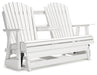 Drift away from everyday worries and into outdoor bliss with this glider loveseat. Dressed in a crisp white, the Adirondack-inspired design has a classic feel. It weathers sunny summer days and cozy winter nights with durable MEGA-TUFF® HDPE material. A drop-down console with integrated cup holders keeps refreshments and snacks within easy reach. With the console snapped into the back, this loveseat has even more room for enjoying lazy days in the shade.