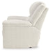 This oversized power recliner seamlessly complements your contemporary cozy space. Bold block arms accentuated with form-fitting padding lend a high-style silhouette. An ample seating area invites you to sprawl during binge watches and relaxed reading hours alike. And with reclining at the press of a button, this piece proves chic design and superb comfort go hand in hand.