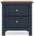 Add homespun charm to your restful retreat. A modern take on a timeless silhouette, this nightstand pairs a dark slate blue finish with a light brown top. Drawer fronts and legs in a classic Shaker style bring an air of beautiful simplicity to the bedroom. Whether it's part of a charmingly curated guest suite or a casually carefree kids room, this nightstand is a welcome addition.