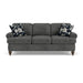 Spirit Meets Style Cozy up with a loved one or claim it all for yourself with the Moxy sofa that lets you personalize details for the perfect look and feel. Formal panel roll arms sit on round turned legs that are available in a choice of three distinct wood finishes—Florentine, Valencia, or Urban Renewal—to complement any décor. The removable T-shaped seat cushions offer a distinctive look and added comfort. Sink into the ideal level of support with your choice of our luxury or plush cushions. Complete the look and showcase your lifestyle with hundreds of different fabric choices, including high-performance and sustainable textiles. Superior frame construction and our patented C-Flex Blue Steel Spring™ ensures your Moxy can be enjoyed for years to come. Formal panel roll arm style Off-the-floor round turned leg come in Valencia, Florentine, or Urban Renewal finishes Semi-attached back cushions remain fixed in place, ensuring a clean look and comfortable feel Removable seat cushions in a distinctive T-shaped style Sit comfortably with luxury cushions featuring a moderately firm polyurethane foam core wrapped with a soft fiber wrap, or select plush cushions featuring a high-resiliency polyurethane foam core wrapped with a soft fiber wrap for added support Built to last with the Flexsteel patented C-Flex Blue Steel Spring™ that provides an elevated level of support Available in hundreds of fabric choices, including those with robust performance and sustainability characteristics Comes with two accent pillows to enhance comfort and style Model Number: 5018-31 Dimensions 37H x 86W x 39L