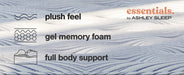 | Details | Comfort level: medium, Flame-retardant polyester comfort fiber, Luxury loft fiber, High-density plush quilt foam for support and comfort; high-density comfort foam, High-density gel memory foam for lumbar support; base support foam for added stability, Power-packed wrapped coil unit with Ashley Edge to minimize motion transfer and increase support, Hyper Cool luxury 4-way stretch knit cover for uniform comfort and durability, Adjustable base compatible, 10-year non-prorated warranty, Note: Purchasing mattress and foundation from two different brands may void warranty; check warranty for details, Foundation/box spring sold separately, Mattress ships in a box; please allow 48 hours for your mattress to fully expand after opening, State recycling fee may apply | |