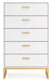 Light and bright, this chest of drawers is inspired by chic design. A matte white finish and goldtone accents offer an elegant touch to this so-cool piece. It beautifully blends the hues of natural living with the edginess of your modern lifestyle.