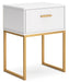 | Details | Made with engineered wood (MDF/particleboard/plywood) and decorative laminate for the right balance of affordability and durability, Decorative laminate replicates natural or man-made material surfaces with consistent color, pattern and texture, Matte white finish, Drawer pulls with goldtone finish, Metal legs with goldtone finish, Smooth-gliding drawer with vinyl-wrapped sides and back for durability, Assembly required | |