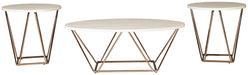 | Details | Set includes 1 coffee table and 2 end tables, Faux marble tabletop, Light goldtone metal base, Assembly required | |