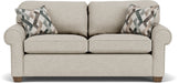 Simple, Classic Tailoring in a Timeless Style Showcase your home with the timeless charm of the Thornton sleeper. Smoothly rolled edges and arms, tapered block legs, and a welt-corded trim make it the quintessential living area piece that doubles as a bed. Offered in your choice of fabric, this sleeper provides the style and comfort that has made it one of our long-time best sellers. Transitional style with rolled arms and a welt-corded trim detail Opens up to reveal a convenient full-sized sleeper bed frame and mattress Upholstered in your choice of fabric, including those with performance and sustainability characteristics Includes two accent pillows in your choice of fabric to match your personal style Sustainably-sourced, kiln-dried wood frame with mortise and tenon joinery for lasting strength and durability High resiliency seat cushions are engineered to maintain their shape over time and are reversible for easy cleaning, rotating and flipping Fiber-filled, semi-attached back cushions are designed to stay in place for a tidy appearance Square tapered legs are available in three finish options Handcrafted in North America Model Number: 5535-43 Dimensions 38H x 78W x 35L