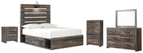 Drystan Panel Bed With 2 Storage Drawers With Mirrored Dresser, Chest And Nightstand